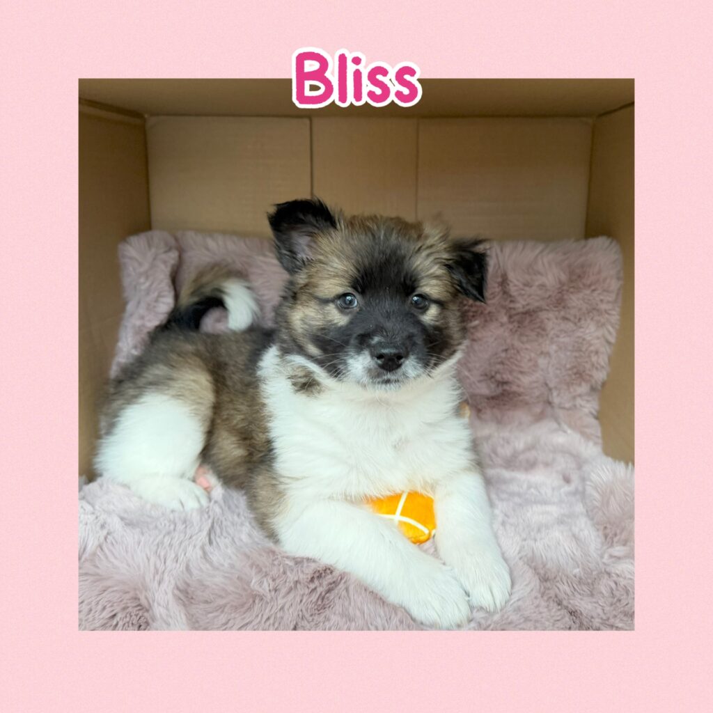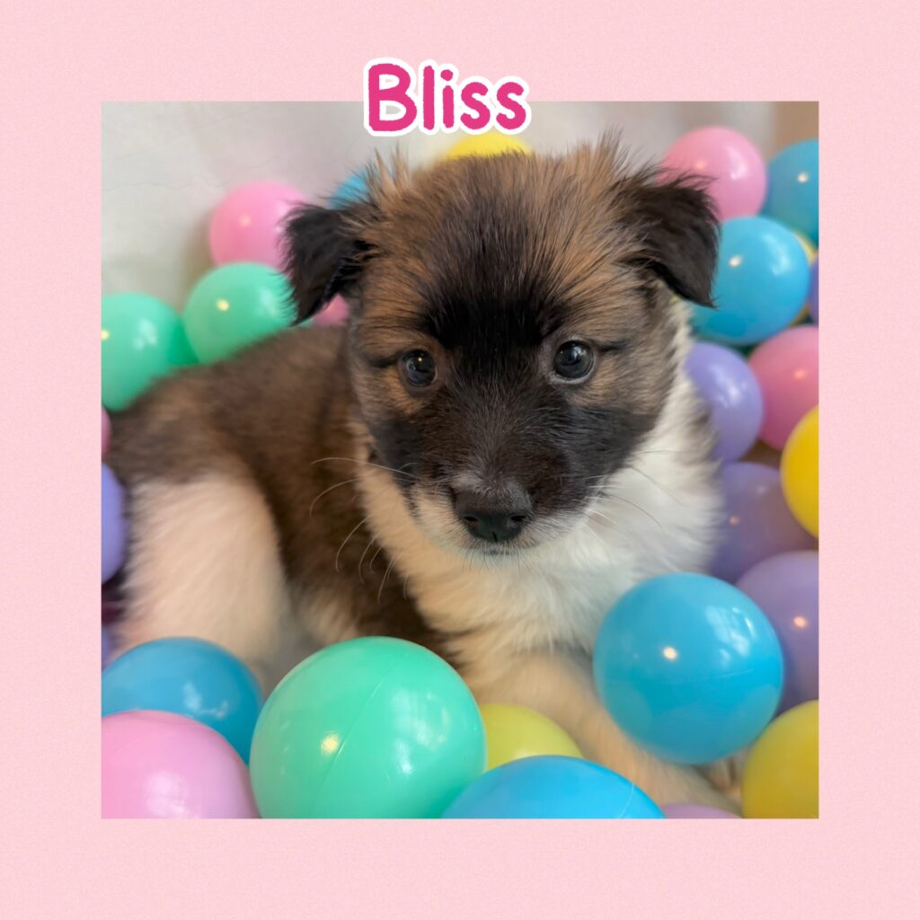 Bliss 4 Wochen alt. Bliss knabbert gerne an allem rum auch an ihren Geschwistern, sie war die erste mit Zähnen und muss noch lernen damit umzugehen. Sie ist eine sehr ruhige und ausgeglichene Hündin.