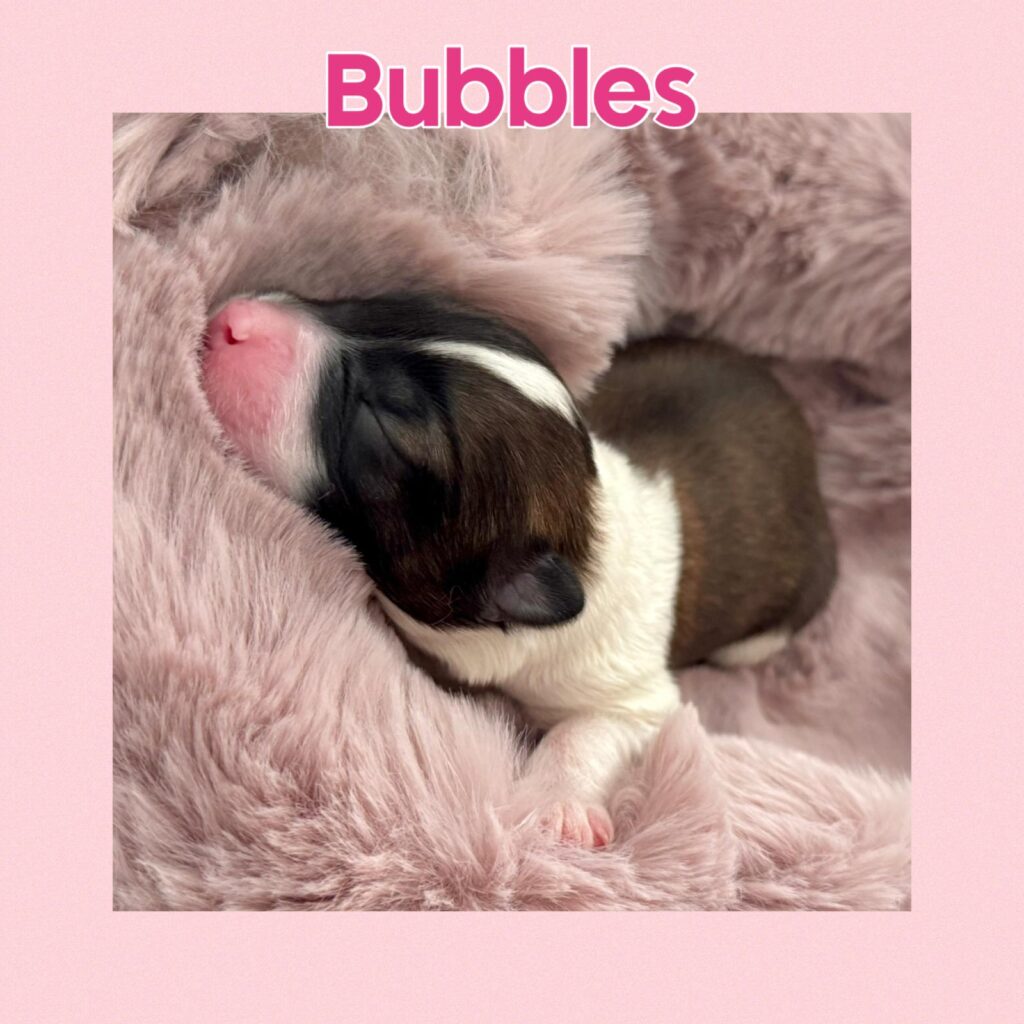 Bubbles ist die zweitgeborene und kam am 6.10.25 um 0.12 Uhr mit einem Gewicht von 312g zur Welt. Sie ist direkt sehr fidel durch die Wurfkiste getigert, deshalb haben wir uns für den Namen Bubbles entschieden.